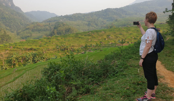 's Morgens stond er een hike trekking op het programma in het gebied Pu Luong, een prachtig stuk natuur. Na het wakker worden tussen de rijstvelden, gaat onze reis verder naar Trang An, Ninh Binh. We gaan hier het Halong Bay ‘on land’ beleven. We hebben een tocht gemaakt met een roeiboot van ca 3 uur. Her en der kan je uitstappen om een tempel te bezoeken en een kijkje te nemen bij bijvoorbeeld King Kong Island. Je vaart door verschillende grotten en hebt adembenemende uitzichten. Normaliter wordt nog een overnachting gedaan bij Pu Luong, maar wij zijn naar Hanoi terug gereden om vervolgens de volgende ochtend te vliegen naar Hué.